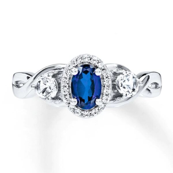 A lovely oval blue sapphire is the star of this ring for her. White sapphires play a beautiful supporting role. The ring is crafted in sterling silver.
